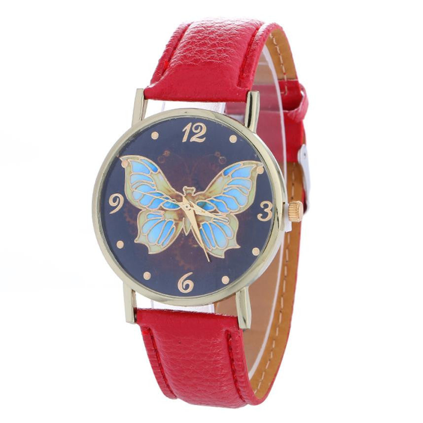 High Quality Butterfly Pattern Fashion Women Colored PU Leather clock relojes mujer dress ladies watch Business