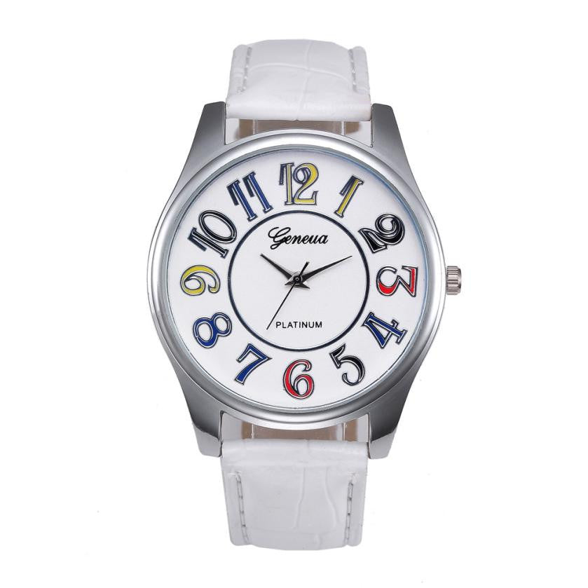 Fashion New Men Leather Belt Watch Stainless Steel Colorful Numbers Dial Quartz Wrist Watch Wristwatches Relogio Masculino
