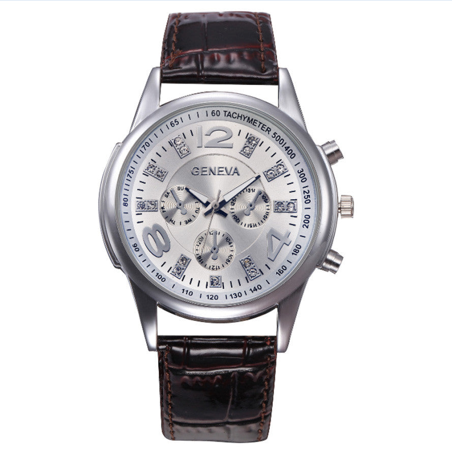 Geneva Top Brand High Quality Men Business Design Dial Leather Band Analog Quartz Wrist Watch Relogio Masculino