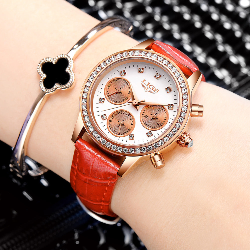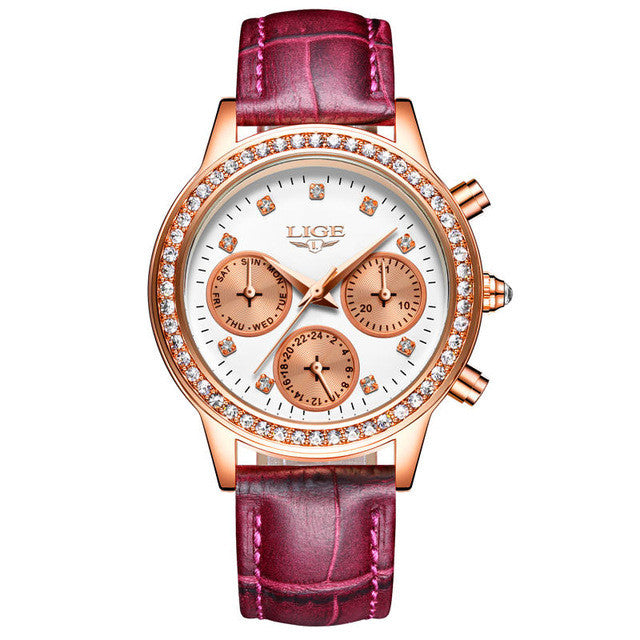 Item Type: Quartz Wristwatches Water Resistance Depth: 3Bar Case Shape: Round Band Length: 19cm Band Material Type: Leather Boxes & Cases Material: Paper Feature: Water Resistant,Complete Calendar,Swim,Auto Date Gender: Women Band Width: 16mm Style: Fashion & Casual Brand Name: LIGE Model Number: 9805 Clasp Type: Buckle Case Thickness: 10mm Case Material: Alloy Movement: Quartz Dial Diameter: 35mm Dial Window Material Type: Hardlex