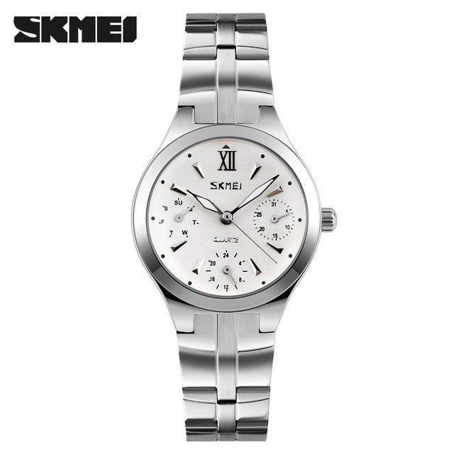 women quartz watch SKMEI brand steel watch luxury 6 hands waterproof wristwatches hot business ladies silver watch reloj mujer